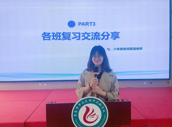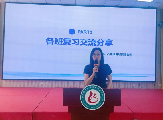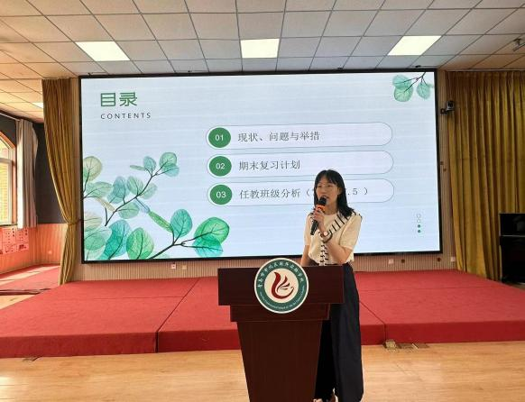 七年级集备组长徐珵珵对七年级教学工作进行汇报,并对现有学情做出了分析。她总结了七年级学生目前存在的共性问题,七年级全体英语教师一直力行高效解决问题,并进行了各种教学尝试,提出了双管齐下的解决措施,为期末助力。她提出各班教师落实“盯人”政策,分层教学,对不同阶段的学生要明确到人,有针对性的查缺补漏。要奋力托举每位学生,维护学生对英语学习的热情,并为八年级爬坡做好心理铺垫。