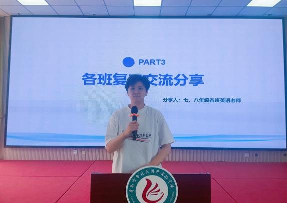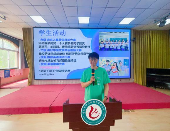 八年级集备组长曹承德对本学期工作进行总结梳理。曹老师首先总结了八年级英语组的教学活动,八年级全体教师积极参与市区两级公开课和比赛,取得了令人瞩目的成绩。其次,他对本学年的学生活动做了总结。八年级学子通过市、区和校三级活动,向学校和社会展现了国开学子拼搏努力的精神风貌和积极进取的扎实学风。最后,他对本学年期中、期末的数据做了具体分析,汇报了未来的努力方向和短长期目标。