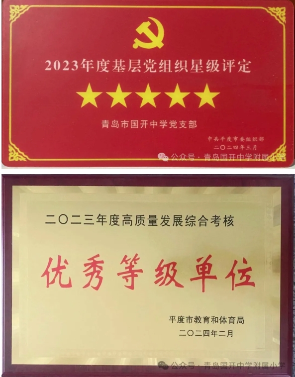 学校以党建引领铸就教育根基,青岛国开中学党支部连续两年在基层党组织星级评定中荣获五星党支部,彰显出先锋堡垒作用。学校教育教学成果斐然:荣获“山东省绿色学校”、连续多年荣获平度市高质量发展综合考核“优秀等级单位”、平度市“书香学校”,在青少年模拟法庭大赛、青岛市青少年未来工程师博览活动、中小学生春季田径运动会、平度市中小学武术比赛、各类主题征文比赛等赛事中屡创佳绩。系列荣誉镌刻着学校“为党育人、为国育才”的使命担当,谱写出基础教育高质量发展的生动篇章。
