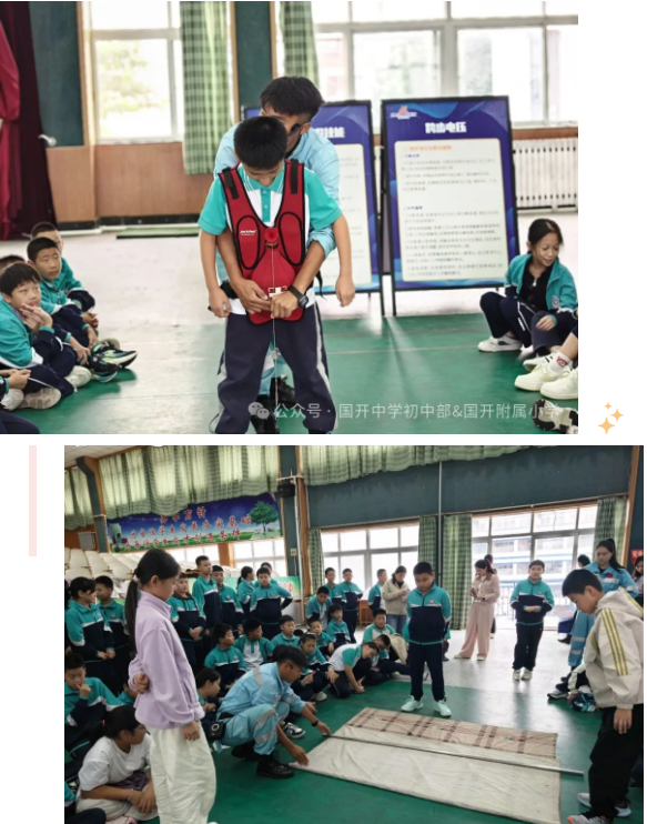 在水上安全环节,同学们不仅掌握了如何正确、快速地穿戴救生衣,更学习了一项重要的“智慧救援”原则——不盲目下水。老师现场演示了如何利用身边的书包、空塑料瓶等物品,制作成有效的漂浮物,抛给落水者,实施安全救助。这一环节让孩子们深刻理解到,见义勇为更需“见义智为”,在保障自身安全的前提下进行施救,才是真正的勇敢与负责。
