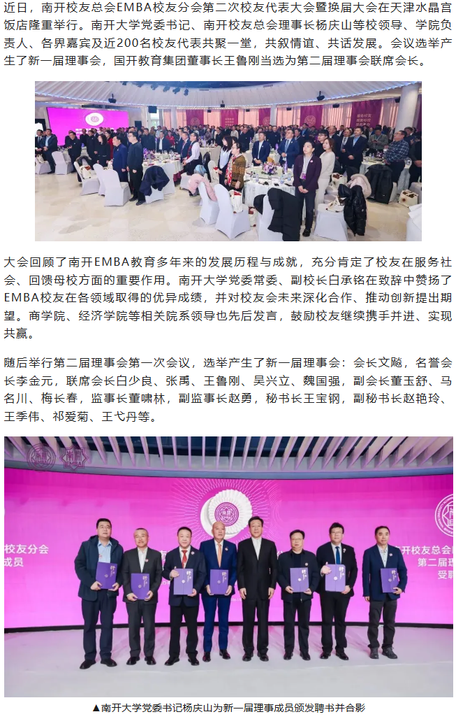 国开教育集团董事长王鲁刚当选南开校友总会EMBA校友分会联席会长