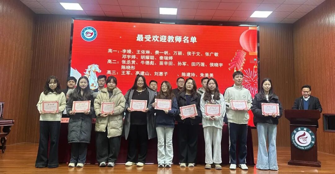 荣耀时刻,星光熠熠。聂宝泉校长庄重宣读了本学期在各项工作中表现突出的先进个人和集体名单。伴随着激昂的颁奖音乐和热烈的掌声,获奖教师们依次走上领奖台,接受属于他们的荣光。本次表彰涵盖多个维度,充分体现了学校对教育教学全方位工作的重视与肯定。
